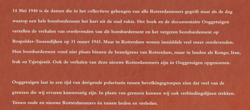 | Titel: | Ooggetuigen : oude en nieuwe Rotterdammers over hun bombardement (+ DVD) |