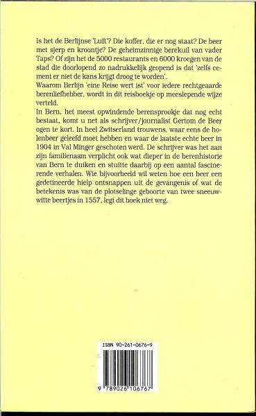 De schrijver vindt dat hij het aan zijn familienaam verplicht is dieper in de berengeschiedenis te duiken. Zijn reisverhaal begint in Berlijn en gaat via Giengen a/d Brenz, waar de Steiff-berenfabriek staat, naar Bern. Aan de hand van plattegronden van Berlijn en Bern kunnen verschillende plaatsen bezocht worden waar iets te vinden is van beren. Van berekuil, souvenirs, vlaggen en wapens, fonteinen tot volksverhalen over beren. Er wordt een overzicht gegeven van Duitse poppen- en speelgoedmusea met bijbehorende adressen en telefoonnummers. Mooie zwart-wit en kleurenfoto's van teddyberen, echte beren, standbeelden met beren, schilderijen met beren enz. Iedere berenliefhebber zal met veel plezier deze verhalen lezen en de verschillende plaatsen willen bezoeken die erin beschreven zijn.
