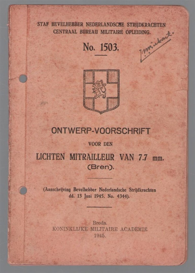 | Titel: | Ontwerp voorschrift voor den LICHTEN MITRAILLEUR VAN 7 mm. ( Bren ) ( No 1503 ) |