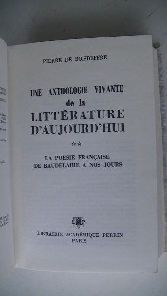 | Titel: | Une anthologie vivante de la litterature d'aujourd'hui, (1945 - 1965) Volume 2. La poesie francaise de Baudelaire a nos jours |