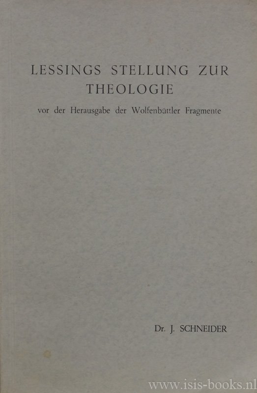 LESSING, G.E., SCHNEIDER, J. - Lessings Stellung zur Theologie