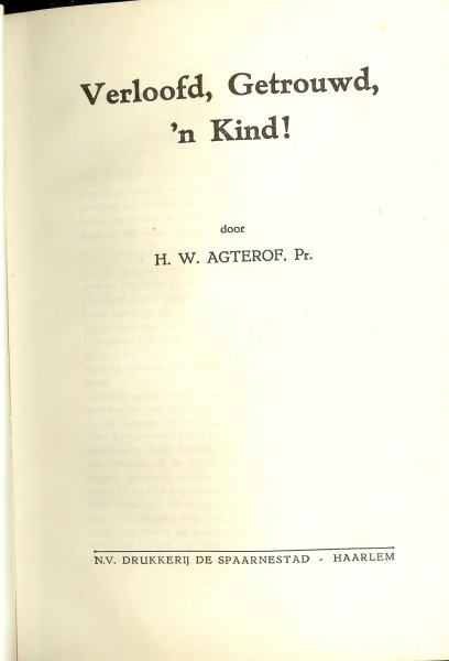 Agterof, Pr. H.W. Imprimatur H.A.J. Drost Pr. A.H.D. - Verloofd