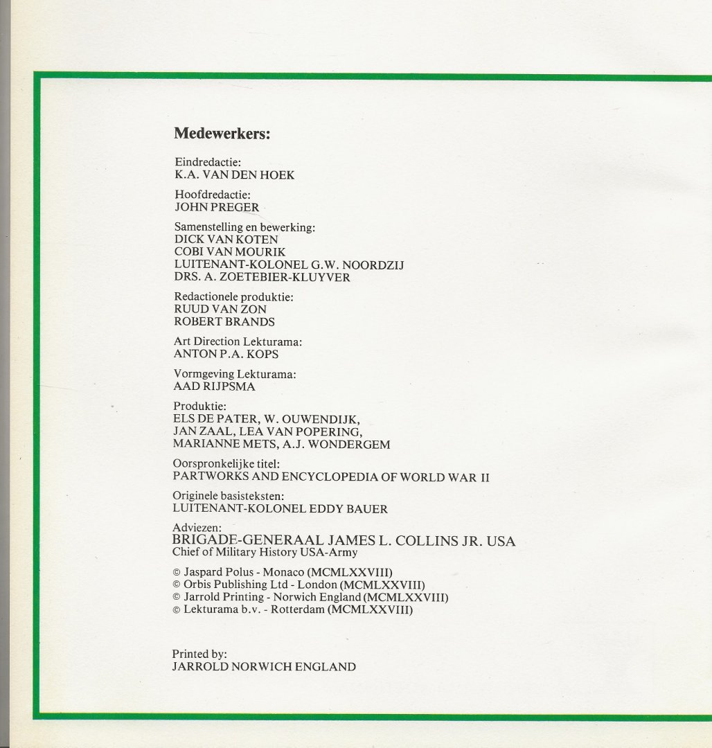 Foto's, documenten, afbeeldingen, plattegrondjes. Orginelen basisteksten Luitenant - Kolonel Eddy Bauer Vormgeving Lekturama Aad Rijpsma Redactionele produktie Ruud van Zon Produktie Els de Pater |