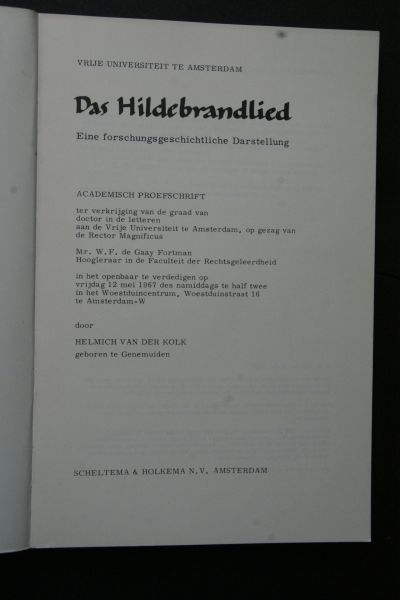 H. van der Kolk - Das Hildebrandlied Eine forschungsgeschichtl