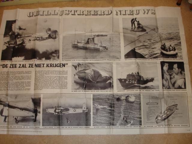 | Bijzonderheden: | z.j. (ca. 1944); den Geallieerden Voorlichtingsdienst; meerdere malen gevouwen pamflet, ca. 143x100 cm.; met hierop afbeeldingen van gealliieeerde jachtvliegtuigen en de "air sea rescue service", die de toestellen waar nodig te dienst staan.; met ... |