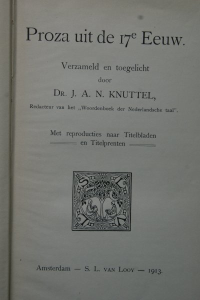 | Titel: | Proza uit de 17e eeuw verzameld en toegelicht door Dr. J.A.N.Knuttel |