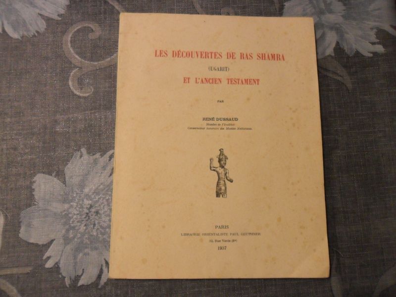 | Meer info: | Les découvertes de ras shamra (ugarit) et l'ancien testament par René Dussaud Membre de l'Institut conservateur honoraire des Musées nationaux / 124 blz. |