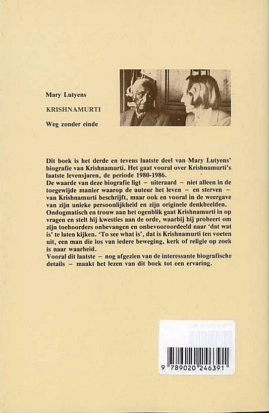 ![Lutyens , Mary . [ isbn 9789020246391 ] 0323 - Krishnamurti. ( Weg Zonder Einde . ) Dit boek is het derde en tevens laatste deel van Mary Lutyens' biografie van Krishnamurti. Het gaat vooral over Krishnamurti's laatste levensjaren, de periode 1980-1986. De waarde van deze biografie ligt - Lutyens , Mary . [ isbn 9789020246391 ] 0323 - Krishnamurti. ( Weg Zonder Einde . ) Dit boek is het derde en tevens laatste deel van Mary Lutyens' biografie van Krishnamurti. Het gaat vooral over Krishnamurti's laatste levensjaren, de periode 1980-1986. De waarde van deze biografie ligt -](https://images.boekwinkeltjes.nl/medium/XjkhinWx27kePZVGA1gp.jpg)