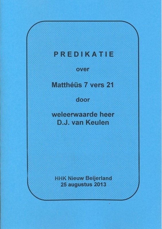 Predikatie door dhr. D.J. van Keulen over Mattheus 7 vers 21: