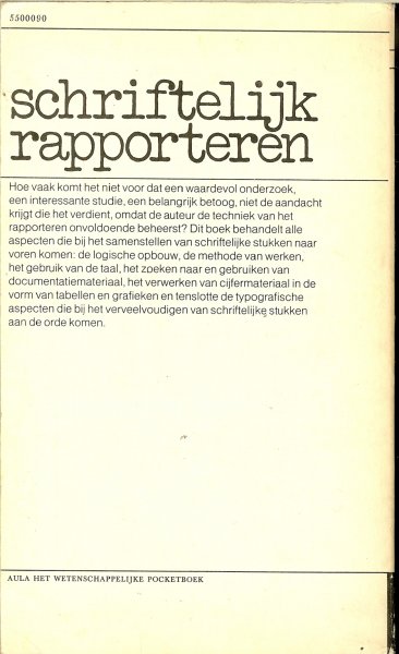 | Titel: | Schriftelijk rapporteren .. van rapporten, nota's , memoranda , scripties , dissertaties en zakelijke correspondentie en dergelijke |