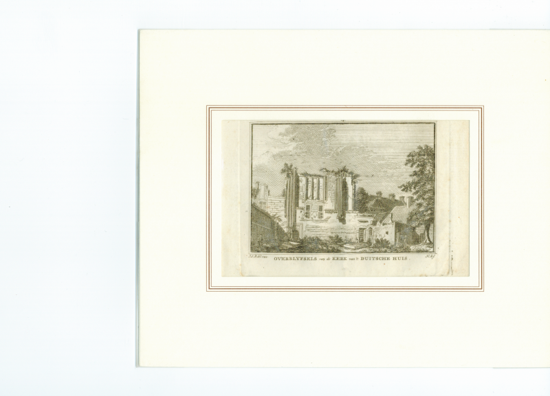 | Titel: | Overblyfsels van de Kerk van 't Duitsche Huis. Originele kopergravure |