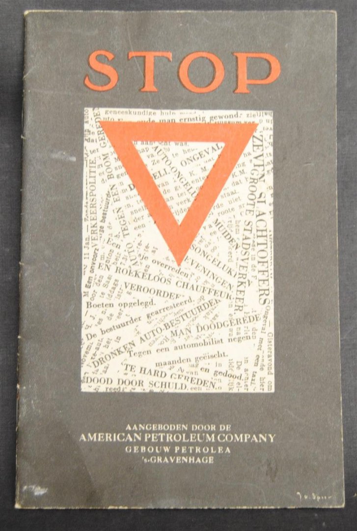 Only minor wear. GOOD condition.Rare advertising brochure with Dutch traffic rules combined with te products of The American Petroleum Company. Back cover with a drawing of the A.P.C. building Petrolea in Den Haag. After 1938 name was changed Standard Amerikaansche Petroleum Maatschappij (SAPC). and after 1948 this became part of ESSO