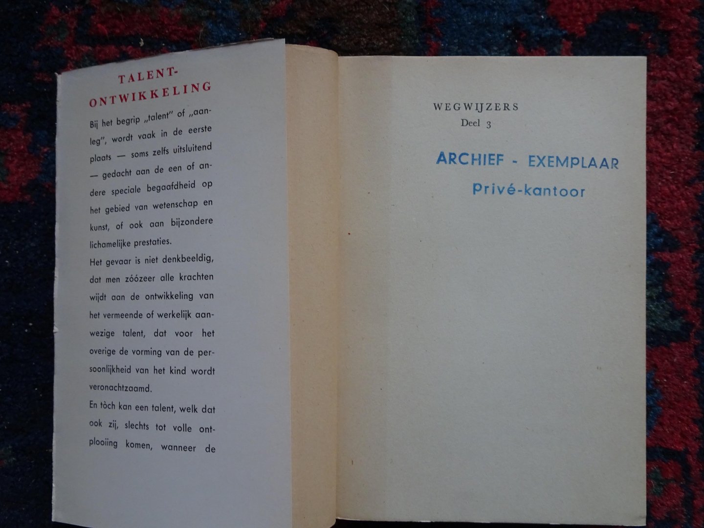 | Bijzonderheden: | 100 p. Stempel ( "archief-exemplaar Privé-kantoor"), verder zeer goed. "De wegwijzers no. 3". |