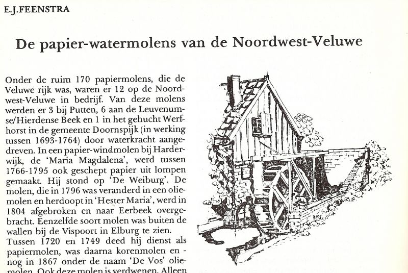 Feenstra, E.J. - DE PAPIERWATERMOLENS VAN DE NOORDWEST-VELUWE