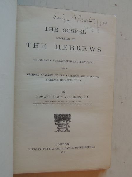 | Titel: | The gospel according to the Hebrews : its fragments translated and annotated / with a critical analysis of the external and internal evidence relating to it |