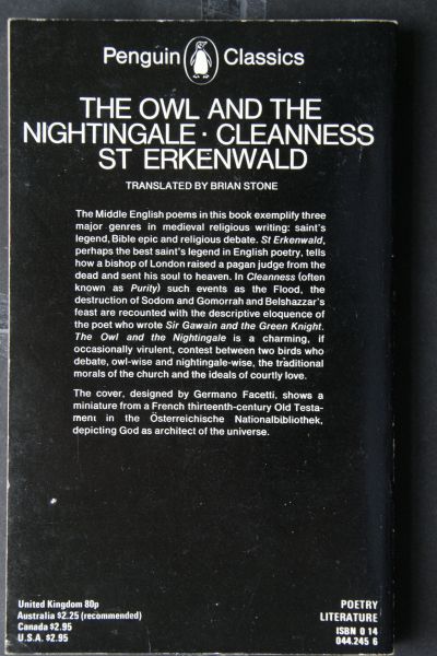 | Titel: | The Owl And The NIGHTINGALE; Cleanness; St. Erkenwald ; Translated and introduced by Brian Stone |