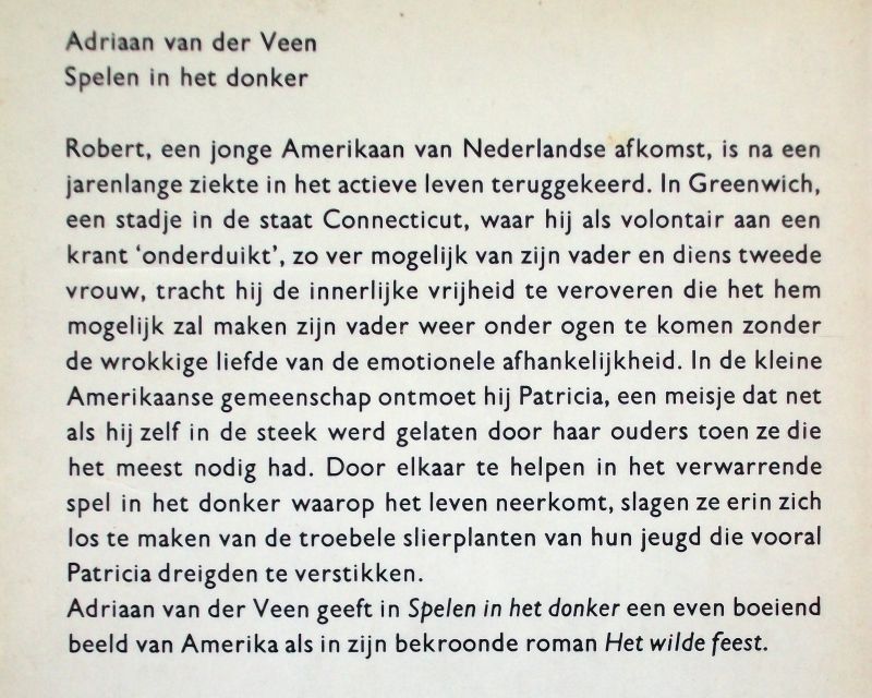 Adriaan van der Veen - Spelen in het donker (Salamander / Querido - Amsterdam) ISBN 90 214 9225 3 157 pp pocket (boek is in goede staat) Prijs €2,25 |