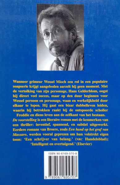 (De Harmonie) ISBN 90-6169-570-8 1e druk 1998 245 pp paperback (zo goed als nieuw!) Staat van het boek: 9.0 Wanneer grimeur Wessel Mioch een rol in een populaire serie soapserie krijgt aangeboden aarzelt hij geen moment. Met de vertolking van zijn personage, Hans Gelderblom, oogst hij direct veel succes, maar op den duur beginnen voor Wessel persoon en personage, waan en werkelijkheid door elkaar te lopen. Hij gaat een bizar dubbelleven leiden, waarin hij betrokken raakt bij de ontspoorde scholier Freddie en diens leven aan de zelfkant van het bestaan Prijs €3,50 |
