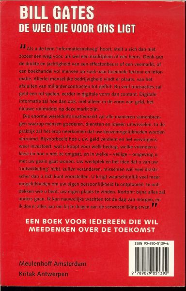 | Titel: | De weg die voor ons ligt .. De baanbrekende visie van Microsoft-topman Bill Gates op de informatiesnelweg en de gevolgen daarvan voor onderwijs,entertainment,politiek en business |