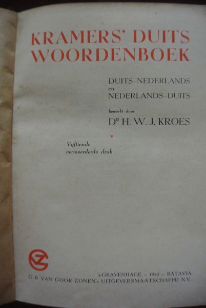 Kroes, Dr. H.W.J. - KRAMERS' DUITS WOORDENBOEK; Duits-Nederland