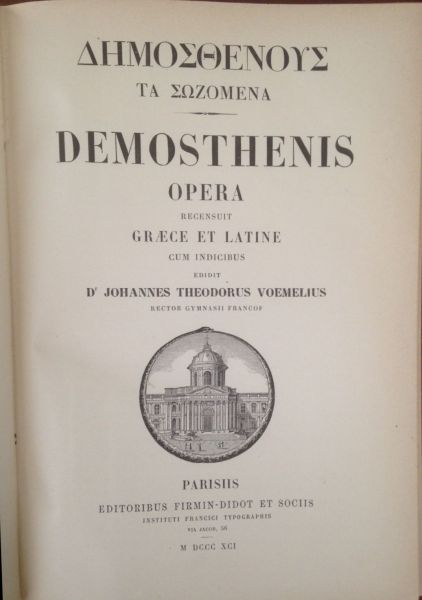 | Titel: | DEMOSTHENES, - Opera. Recensuit Graece et Latine cum indicibus edidit J.Th. Voemelius. |