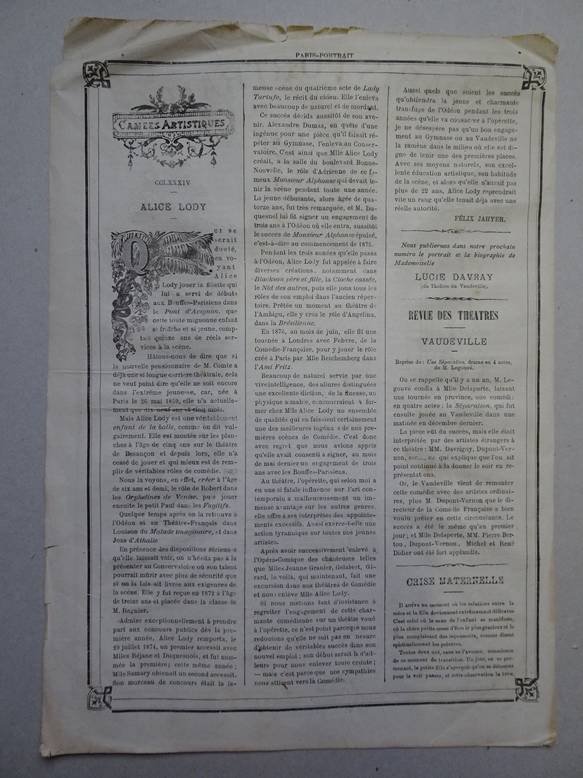 | Titel: | Paris-Portrait, ancien Paris théatre. Journal hebdomadaire, du 24 au 30 Octobre 1878. |