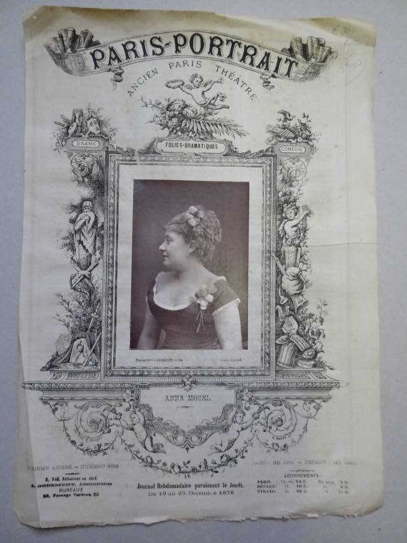 | Bijzonderheden: | 1878; plano, cover of Paris-Portrait with mounted photo-lithograph of Anna Morel; photoglyptie by Lemercier et Cie, cliché by Nadar; 6th year, no. 292. |