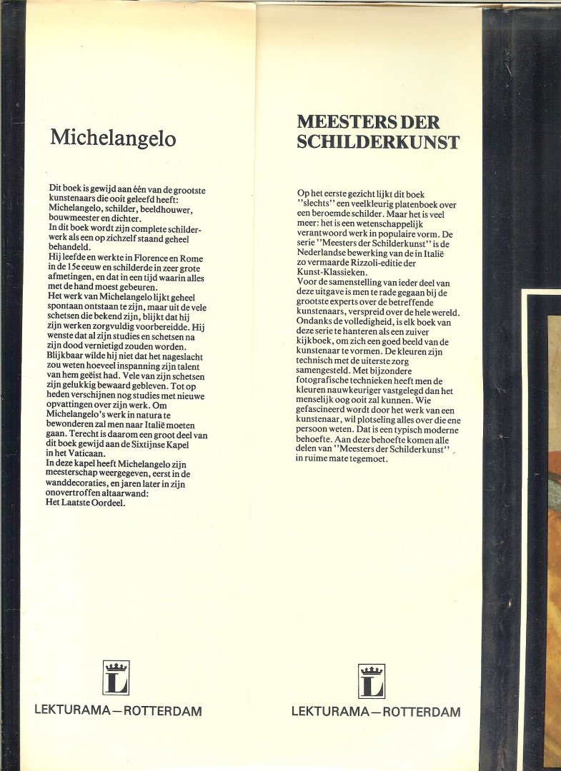 | Titel: | Michelangelo - Meesters der Schilderkunst : Michelangelo .. Alle tot nu bekende schilderijen van MICHELANGELO en een beknopt overzicht van zijn voornaamste werk als beeldhouwer en bouwmeester. |