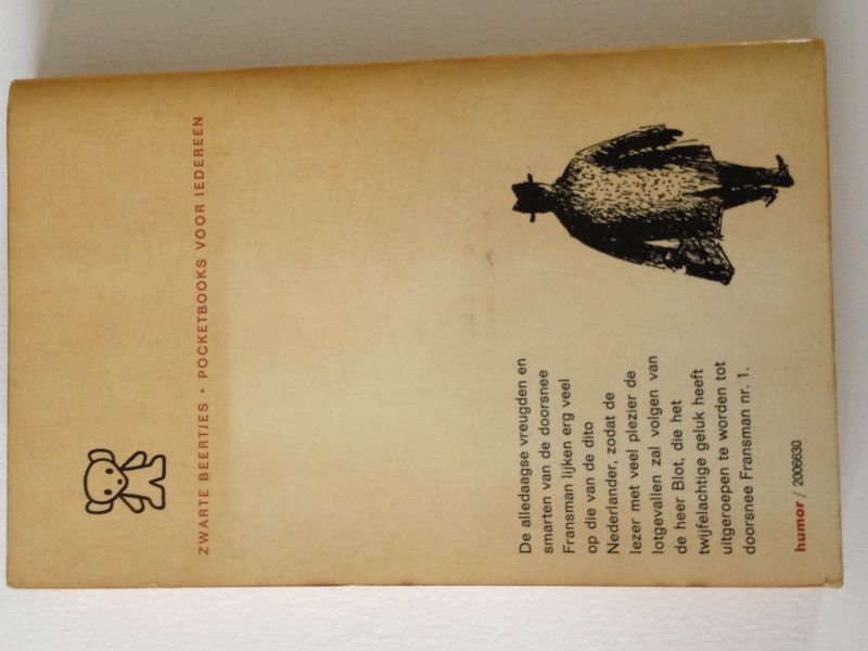 | Meer info: | De alledaagse vreugden en smarten van de doorsnee Fransman lijken erg veel op die van de dito Nederlander, zodat de lezer met veel plezier de lotgevallen zal volgen van de heer Blot, die het twijfelachtige geluk heeft uitgeroepen te worden tot doorsnee Fransman nr. 1. |