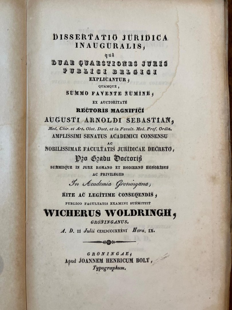 Woldringh, Wicherus, uit Groningen - Dissertation legal 1836 |