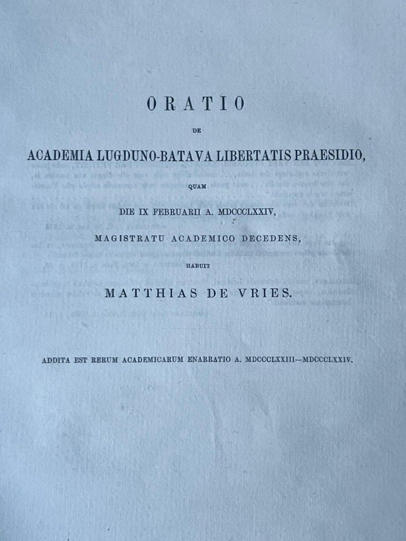 Vries, Matthias de - Dissertations 1874 | Oratio de academia Lu