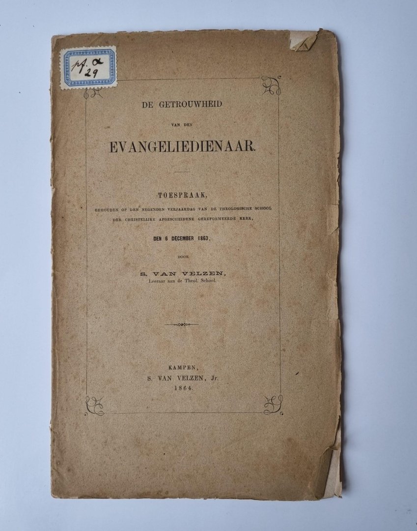 | Titel: | De getrouwheid van den evangeliedienaar. Toespraak [...] Kampen S. van Velzen, jr. 1864 |