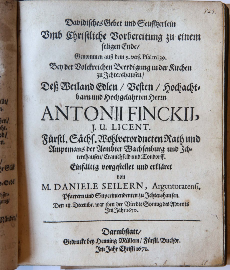 ![Seiler, Daniel - Davidisches Gebet und Seufftzerlein [...] genommen auß dem 5. vers. Psalmi 39. Bey der Volckreichen Beerdigung in der Kirchen zu Ichtershausen deß Weiland [...] Antonii Finckii [...] Darmstadt Henning Müller 1671 Seiler, Daniel - Davidisches Gebet und Seufftzerlein [...] genommen auß dem 5. vers. Psalmi 39. Bey der Volckreichen Beerdigung in der Kirchen zu Ichtershausen deß Weiland [...] Antonii Finckii [...] Darmstadt Henning Müller 1671](https://images.boekwinkeltjes.nl/medium/bMlnWoV6vQIYbUqNTFub.jpg)