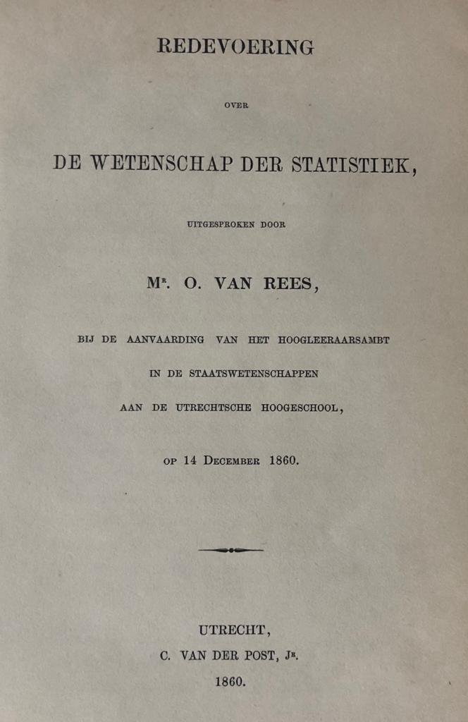 | Titel: | Redevoering over de wetenschap der statistiek [...] Utrecht C. van der Post Jr. 1860 |