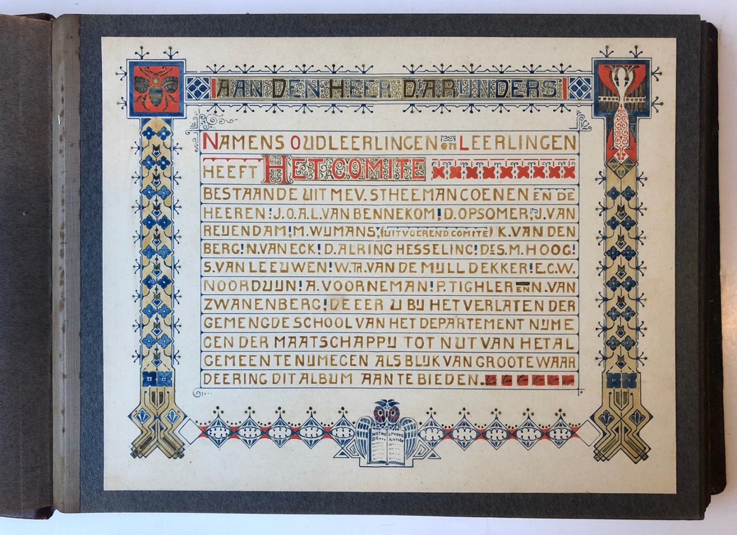 | Bijzonderheden: | Tekst op titelblad: Aan den heer D.A. Rijnders. Namens oudleerlingen en leerlingen heeft het comité bestaande uit mevr. Stheeman-Coenen en de heren J.O.A.L. van Bennekom, D. Opsomer, J. van Reijendam, M. Wijmans, K. v.d. Berg, N. van Eck, D. Alri... |