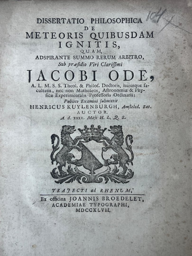 ![Kuylenburgh, Henricus, uit Amsterdam - Dissertation 1747 | Dissertatio philosophica de meteoris quibus dam ignitis [...] Utrecht Joannes Broedelet 1747. Kuylenburgh, Henricus, uit Amsterdam - Dissertation 1747 | Dissertatio philosophica de meteoris quibus dam ignitis [...] Utrecht Joannes Broedelet 1747.](https://images.boekwinkeltjes.nl/medium/5xenwIFhfqrufIE513X1.jpeg)