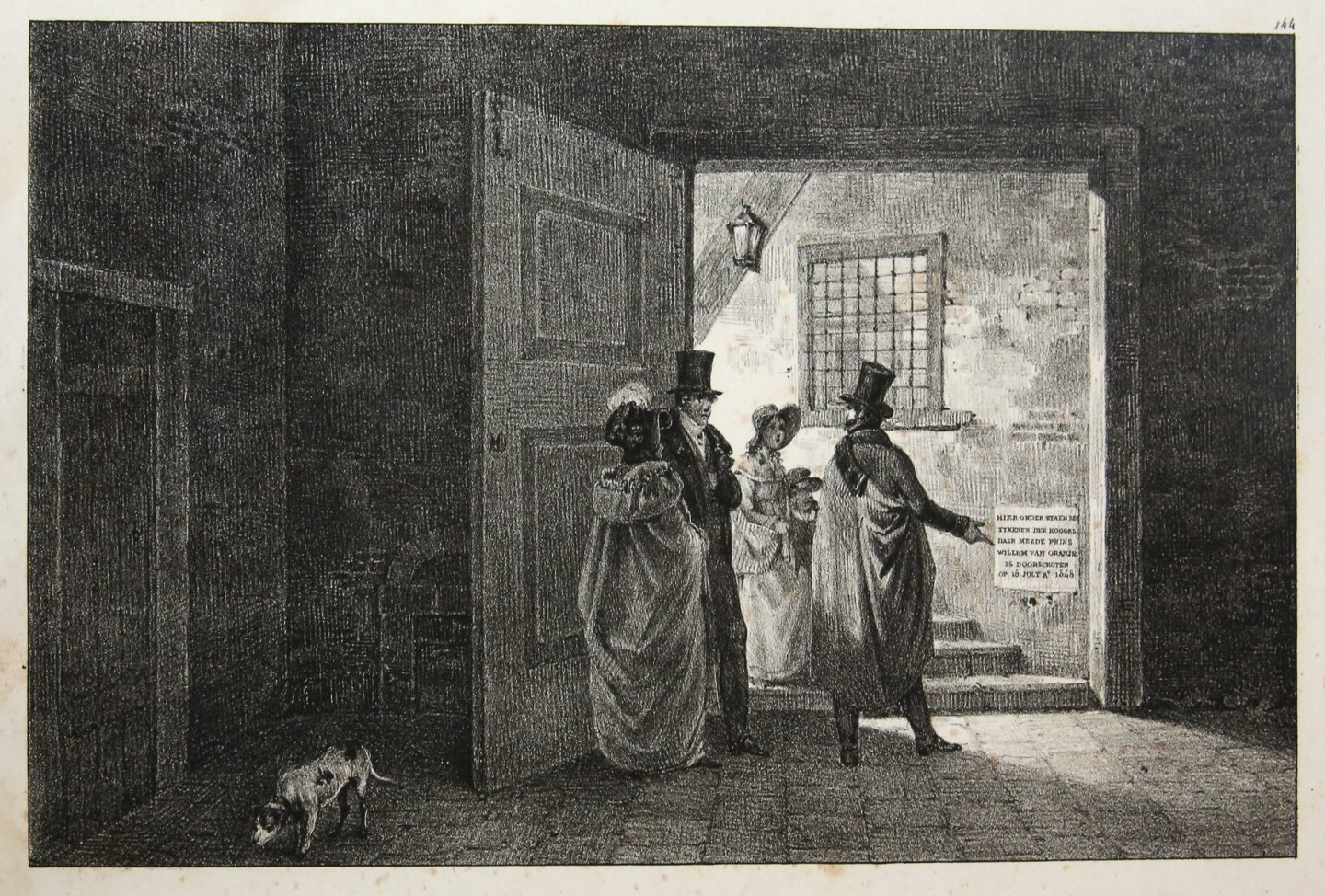 | Titel: | Prent: 'Vue de l'esealier (sic) sur lequel Guillaume Ir Prince d'Orange a ete assassine a Delft, le 16 Julliet 1548 (sic)'. Litho van Jobard naar le Gl. de Howen, uitg. Madou. |