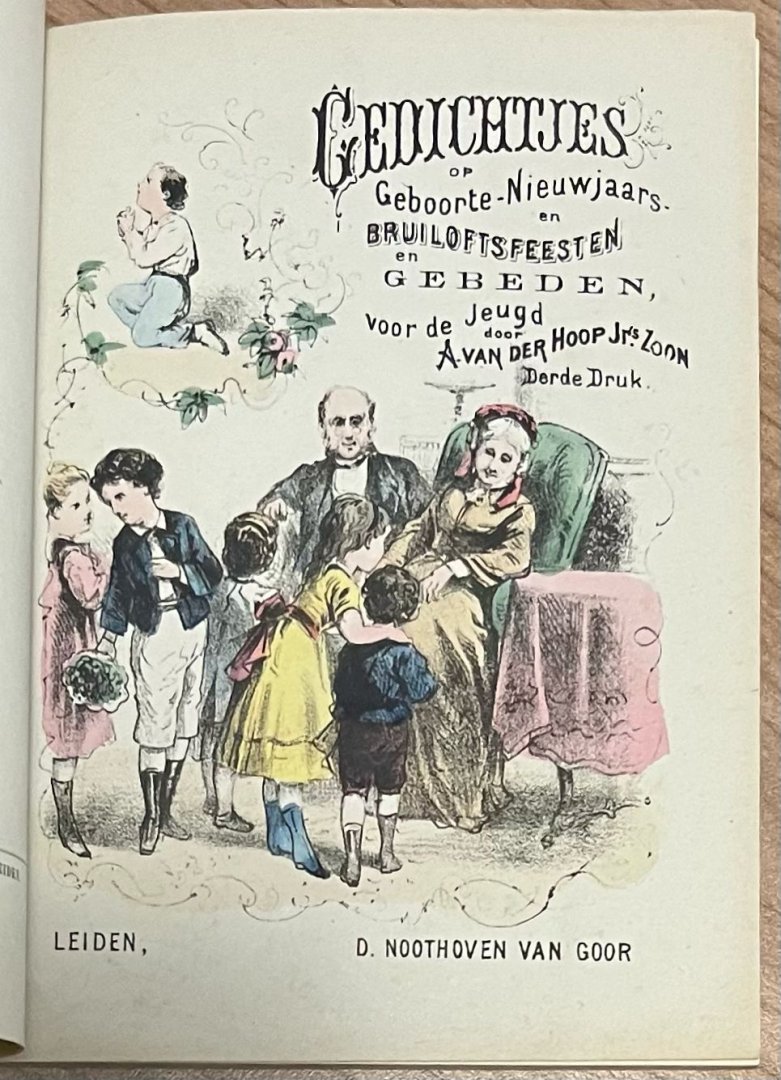 | Titel: | School book, 1887, Children's Education | Gedichtjes op geboorte-, nieuwjaars- en bruiloftsfeesten en gebeden voor de jeugd. 3e druk. Leiden, D. Noothoven van Goor, [c. 1865]. |