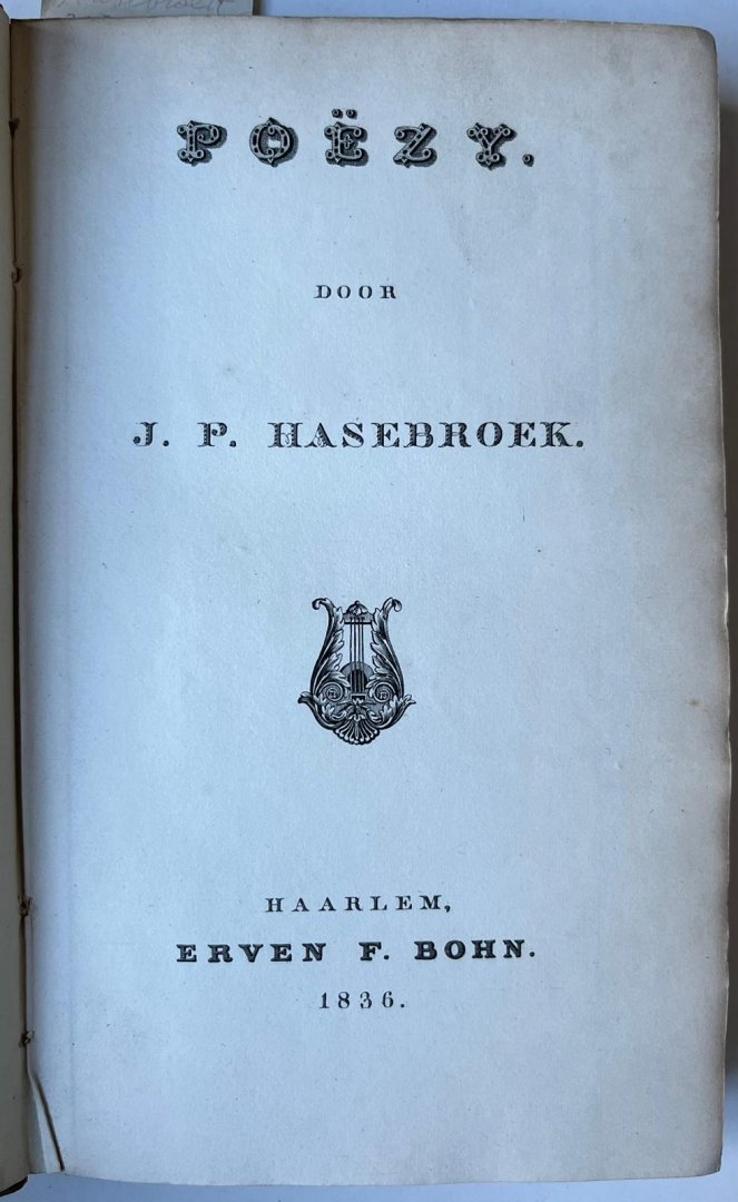 Hasebroek, Johannes Petrus - [Literature 1836] Poëzy. Haarlem,