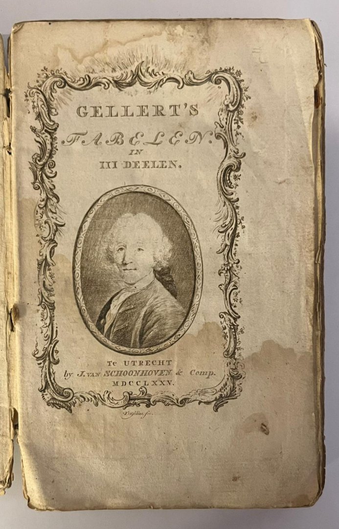 | Titel: | Fables, 1775, Gellert | Fabelen. Utrecht, J. van Schoonhoven & Comp., 1775. [3 delen in 1 band met doorlopende paginering] |