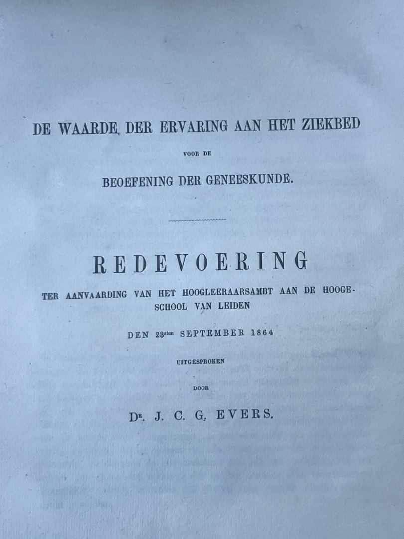 Evers, J.C.G. - Oration 1864 | De waarde der ervaring aan het z