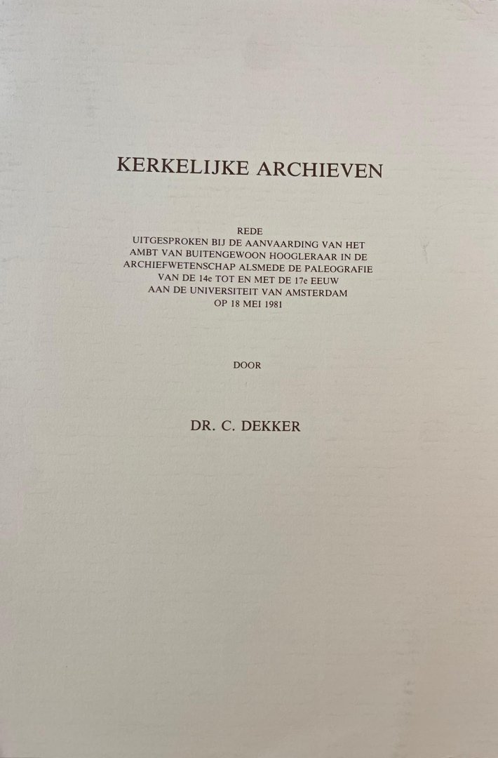 | Titel: | Oratie Amsterdam C. Dekker 1981 | Kerkelijke archieven. 1981 |