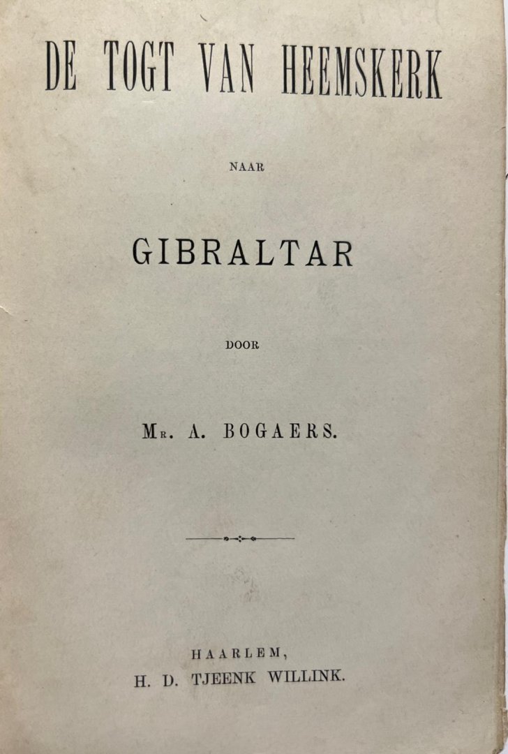 | Titel: | Poetry 1860 | De togt van Heemskerk naar Gibraltar. Haarlem, H.D. Tjeenk Willink, [1860], 8°: 4, 80 pp. |
