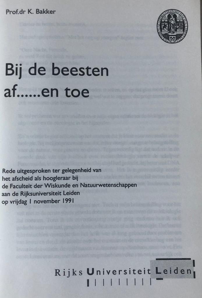 | Titel: | Bij de beesten af ... en toe. Leiden Rijksuniversiteit 1991 |
