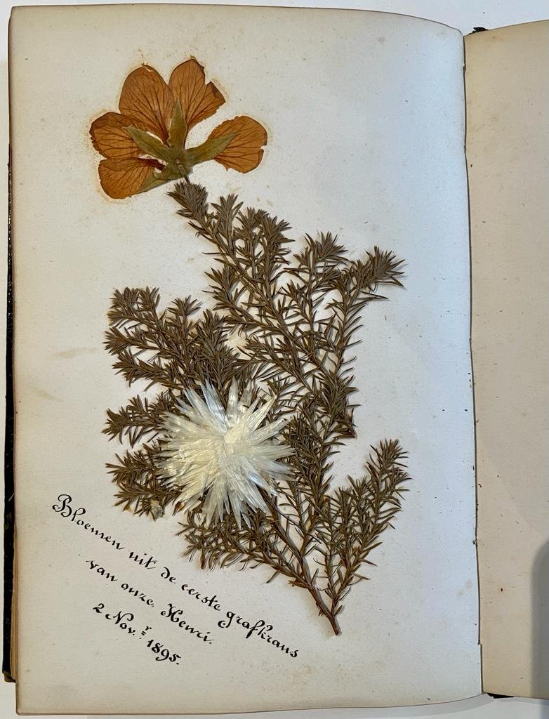 | Bijzonderheden: | Bijdragen van 80 jarige vader Tisfot (d.d. Amsterdam 1887), tante C.A. van Bol Es-Bremmer, C.J.M. Bremmer, H.M. Bremmer, W. Wirix-Bremmer. Verder bloemen van graf van 'onze Henri', 1895. Marie van den Eijnden of tante Mimi uit Vught. Andere namen:... |