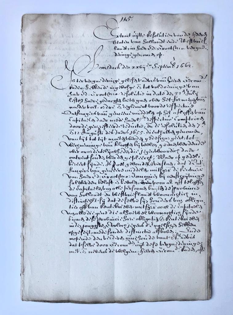 [Manuscript, 1662] Extract uit de resolutien van de Staten van Holland