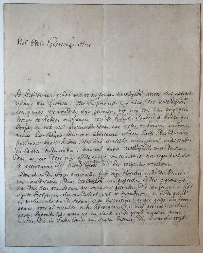 | Titel: | [Manuscript 1742, legal, inheritance] Brief van Jacob Gilles, d.d. 's-Gravenhage 1742, manuscript, 4o, 6 pag. |