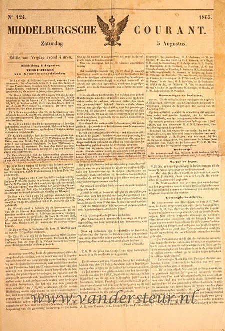 | Titel: | MIDDELBURG, JANSSEN, RUTTEN -- Aflevering van de Middelburgsche Courant van 5-8-1865, plano, 4 pag. |