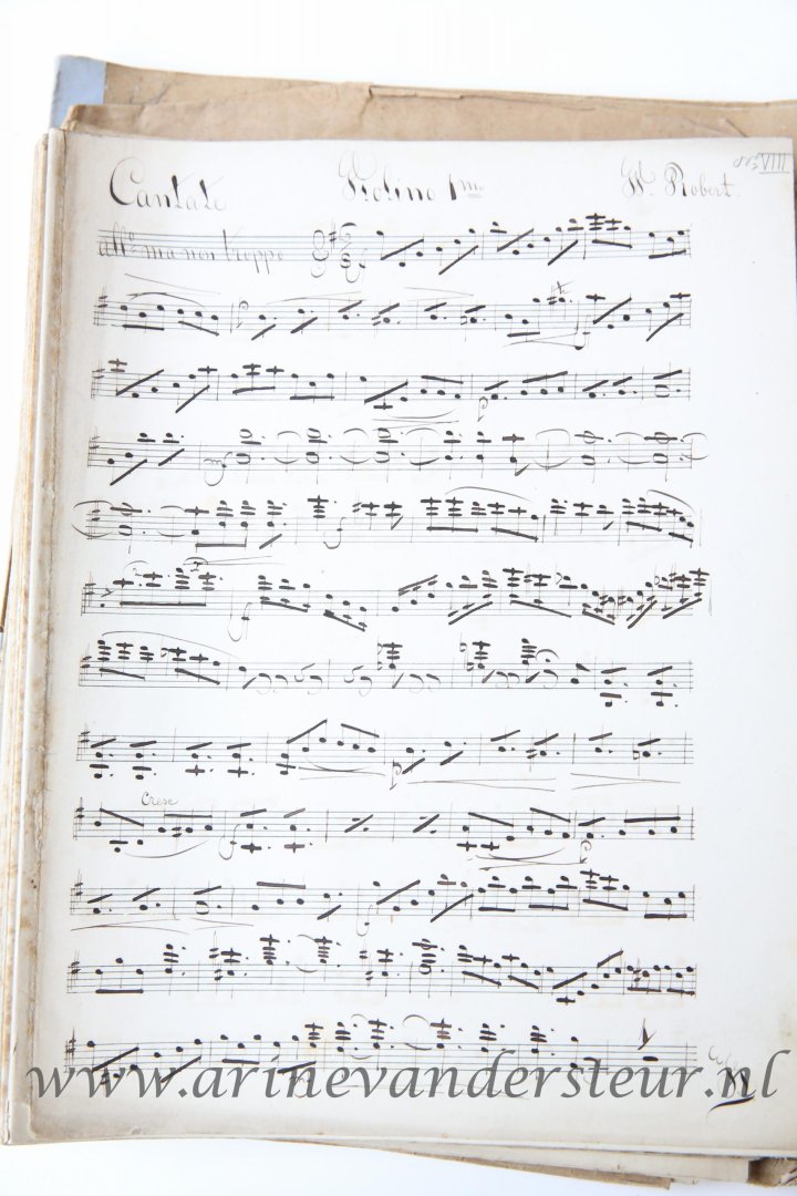 | Titel: | MUZIEK, ROBERT “Cantate van W. Robert”, 19 katernen van ieder ca 20 p. muziekhandschrift, 19e-eeuws. De woorden van de sopraansolo “Wat wekt gij niet in veler hart. Dat stil en zacht gevoel ...” |