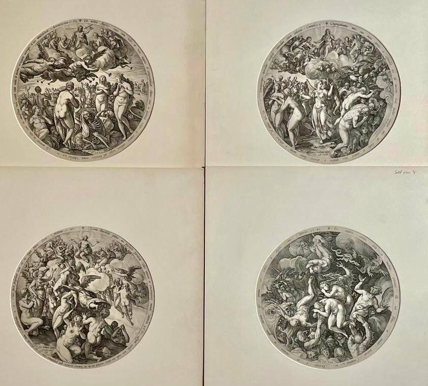 | Titel: | 4 antique prints, engravings, ca. 1577 | The Four Last Things (set title)/ Het Laatste Oordeel, published ca. 1577, H. Goltzius, 4 pp. |